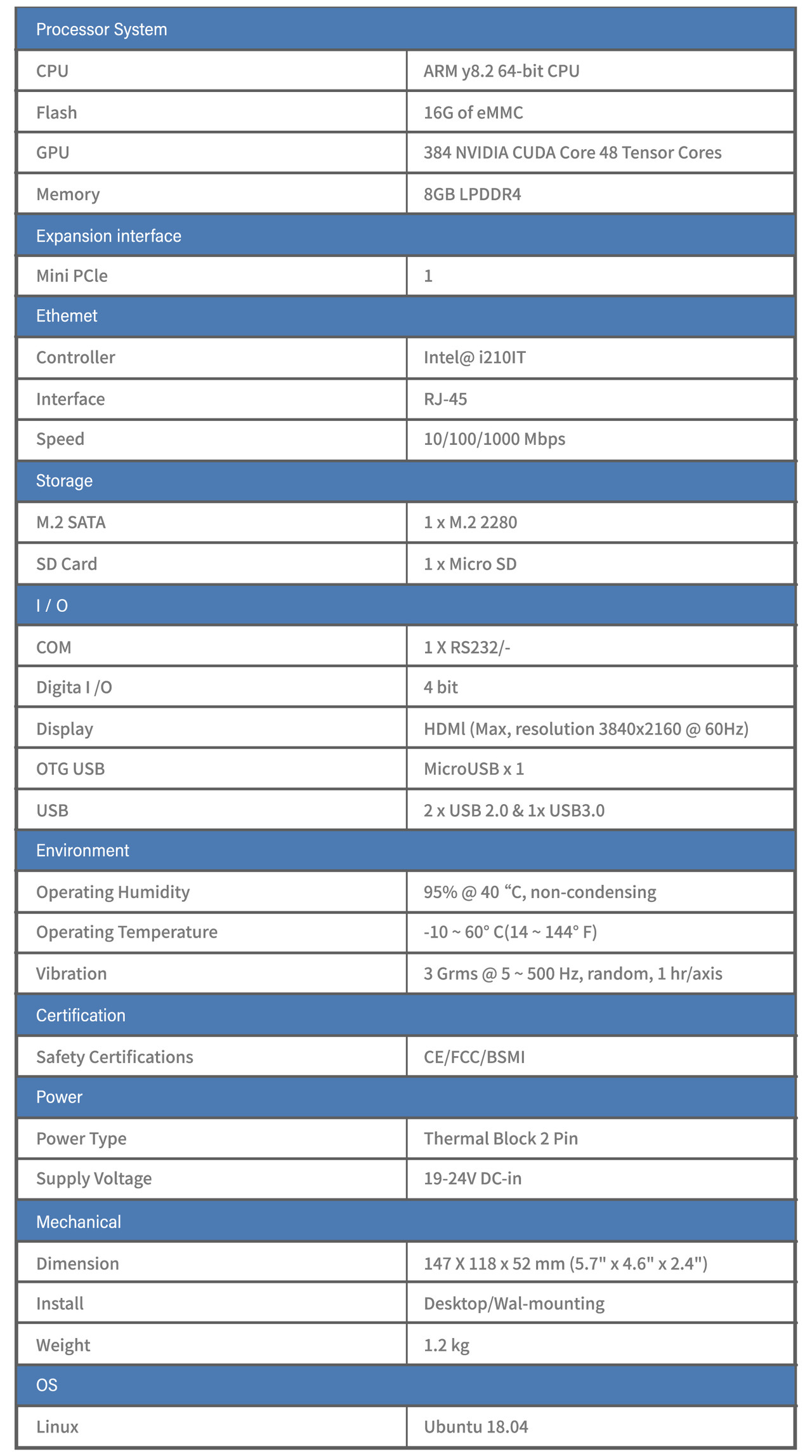NVIDIA Jetson Xavier NX AI Inference System
